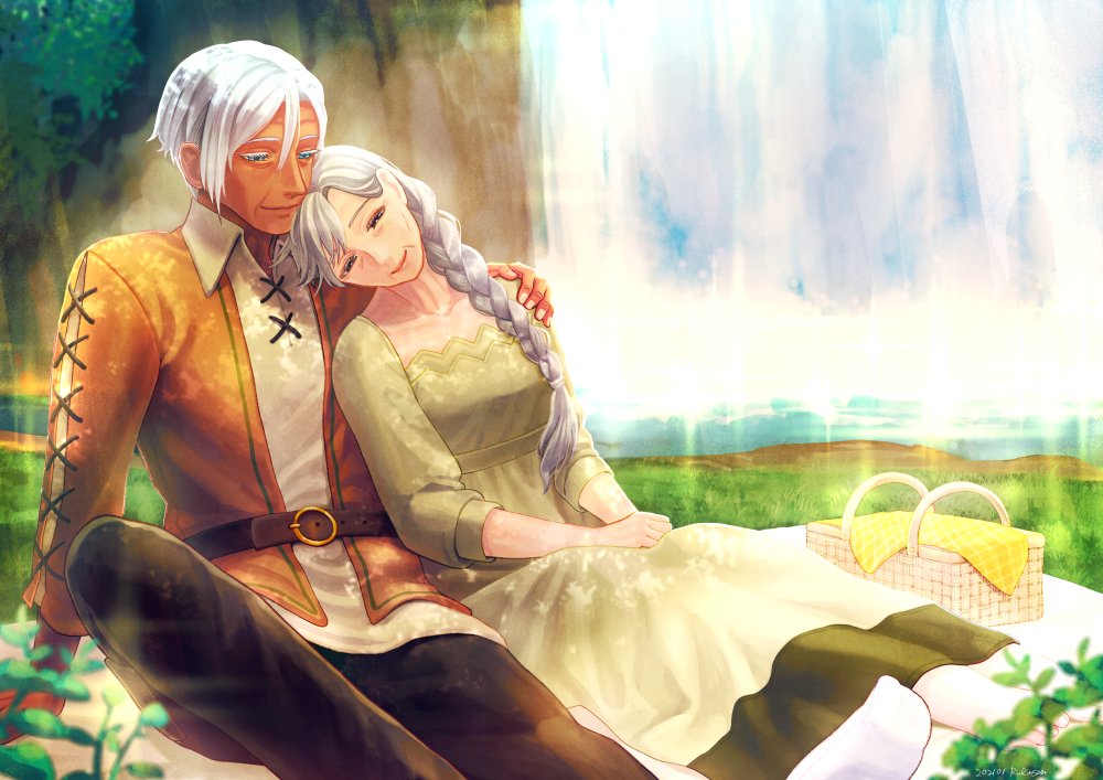 #エルネア7周年おめでとう ございます! iOS版から始めたので、我が家の7周年記念日でもあります。初代夫婦を久しぶりに描きました。この二人がいなければ今まで続いていないです。 これからもエルネア王国が末永く続いていきますように!いつも細やかなアプデや対応、本当に #エルネアありがとう !