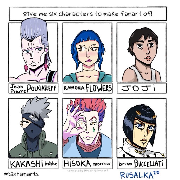 A French Turtle, a moody girlfriend, Pink Guy, silver Naruto, a ped0phile and a sweet Italian mom who has a goth gf. ✨ 10.04.2020 #sixfanarts #6fanartschallenge #jbba #scottpilgrim #joji #naruto #hisoka #anime #fanart #digitalart #jotarokujo #monsterxhunter #hisoka