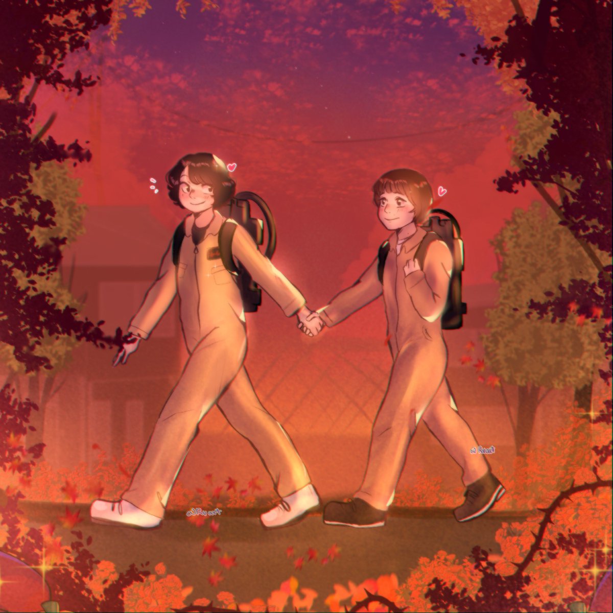crazy together💛💙I really wanted to draw them like in the second season to my babies!😭 I wanted to do something simple but I got inspired👁👄👁✨ #byler #bylerfanart #StrangerThings