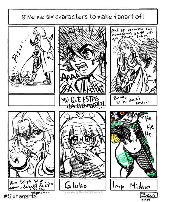 Hice esto hace semanas pero apenas se los comparto jaja, son 2 porque si me pase con el Mu 😂😂 #sixfanarts #sixfanartchallenge