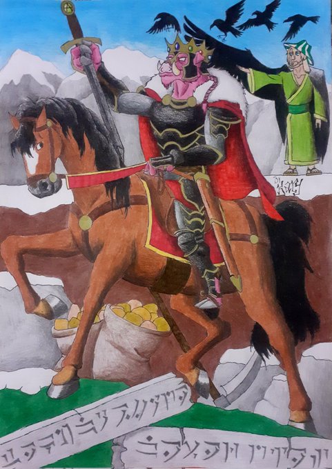 I finally ended with my #technobladefanart Techno in a pose like El Cid, considering that after his passing, he's still winning new followers, just like El Cid won a battle after dead I thought it would be a cool reference, I hope you like it #Technoblade #technobladeneverdies