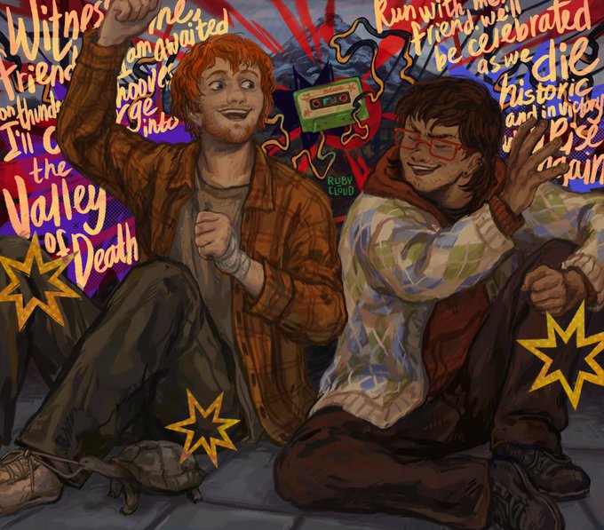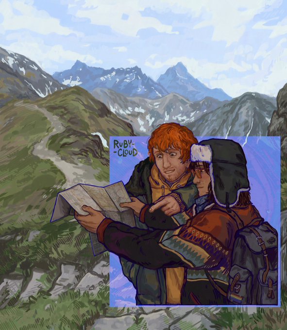 I LOVE MOUNTAINS I MISS MOUNTAINS PUT ME ON A MOUNTAIN RN ! ! ! (the mountains on the back are a study from a photo i took in Poland in Zakopane years ago) #RedValley #RedValleyPod #RedValleyFanart