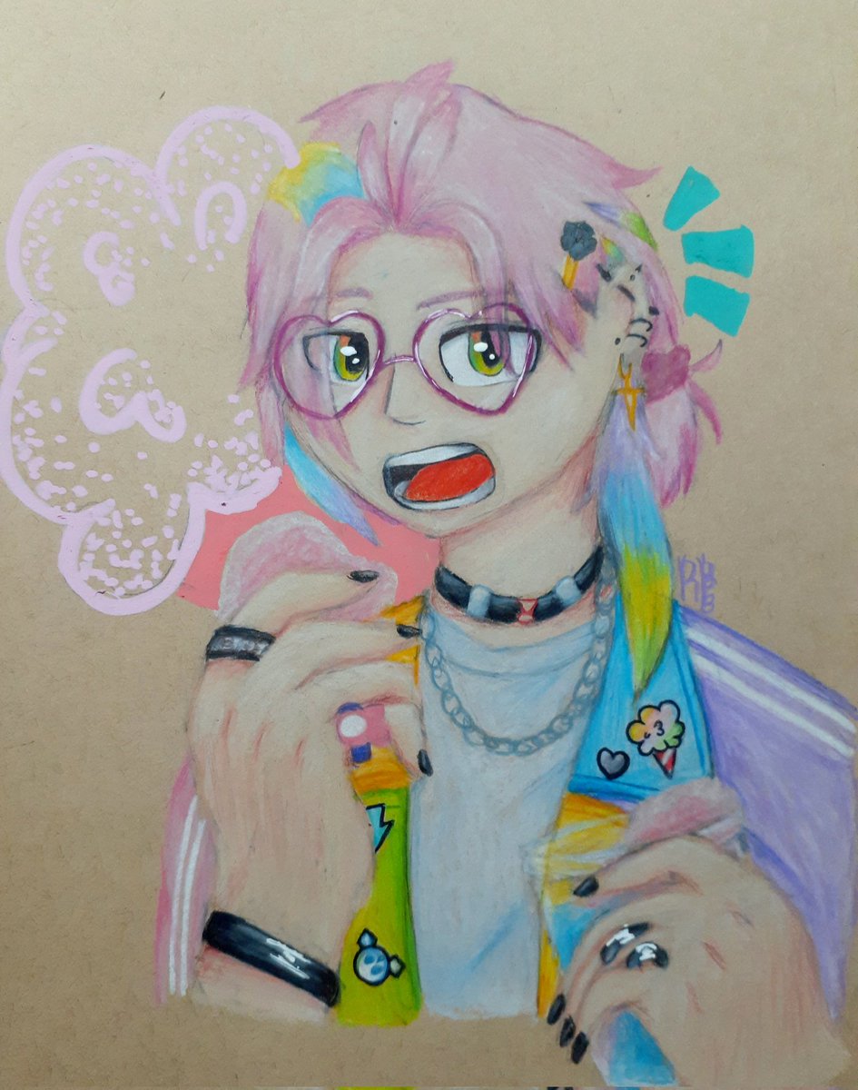 What a Punk Rock Guy!💜🐣 Probably the most vibrant page in my sketchbook rn & I'm loving it🌸 #Dropsights
