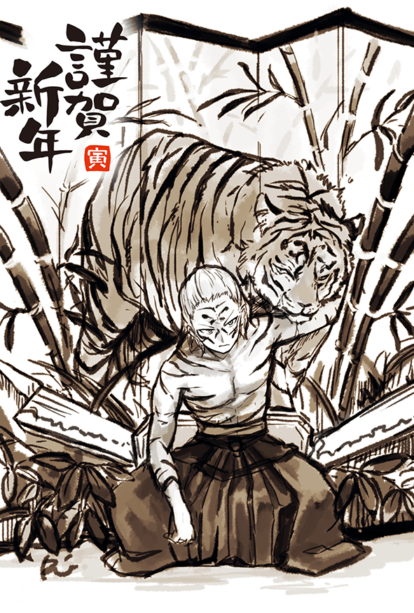 #今年も残りわずかなのでお気に入りの4枚を貼る 自発のオリジナルは少ないけどいっぱい描いた一年でした!!うまくなりてぇ!! ・ピクファン ・年賀 ・ご依頼口絵イラスト ・ご依頼イラスト(アルパカコネクト)