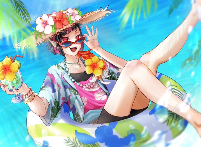 35 165 スイスイリリアちゃん🌺🍹🦇 #ツイステファンアート 23/08/09 19:58
