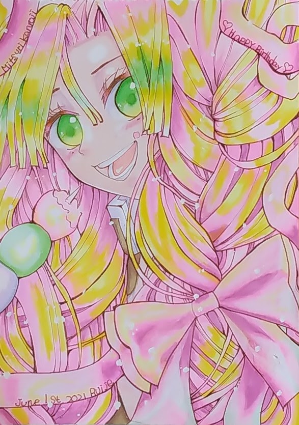 #今月描いた絵を晒そう あれ?1枚? ついでに年末にこのタグやらなかったから🎀子ちゃんも😊 昨年は半年位描けなくて、 不安いっぱいだったけど、 🎀子ちゃんから再開したら、 沢山の反応頂けて泣きました😭❤️ ありがとうございました😭❤️ 来月は3人BDあるので絶対全部描きたい❤️