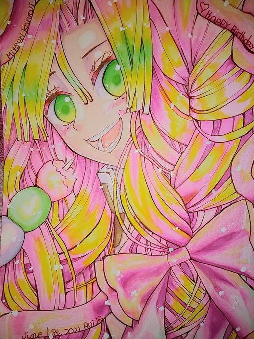 #今月描いた絵を晒そう まとめてみると、赤い絵が多かった🔥🔥🔥 4月は淡い色が多かったから、意識して濃い色を 使ってみた・・・。 もう1枚じつは蜜璃ちゃんBD絵も描き終わっているけど、それは来月扱いで🌸🌸
