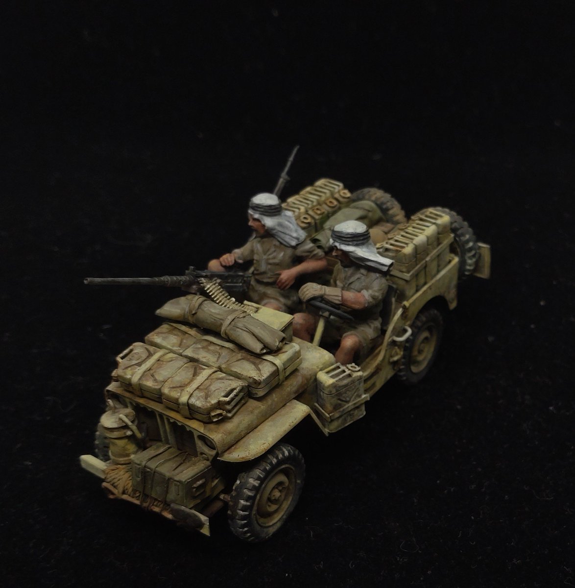 タミヤ1/35 sasジープ完成!! かなり飛ばした色で塗ってみたけどいい意味でアンニュイな感じがあって我ながらよい感じ!砂漠はさぞ暑いから気だるかろう!母さぁーん!僕は今、埼玉県にいまぁす!!埼玉県は今日も猛暑でぇす!!