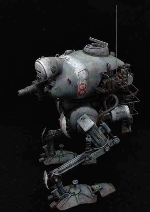 106 555 1/20ファルケ完成!! 飛行機っぽい雰囲気が欲しくて銀色を描き込んだり普段よりタッチもぼけぼけにしてみたけど我ながらかっこよい!!久しぶりにちまちま銀色描き込んだら楽しくて加減が全然わからなかった!それでも雰囲気はでたからよよいのよい☺️ 22/10/30 07:52