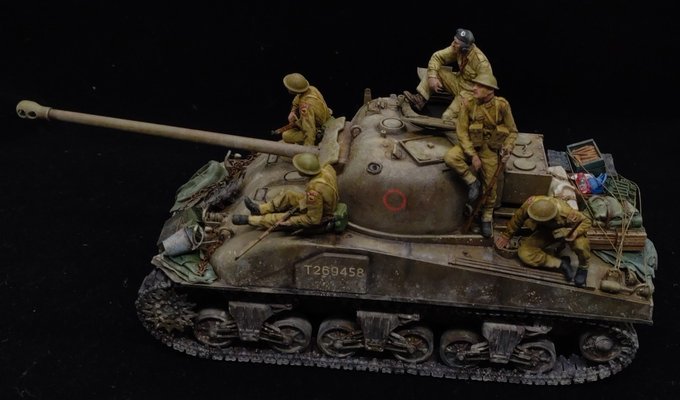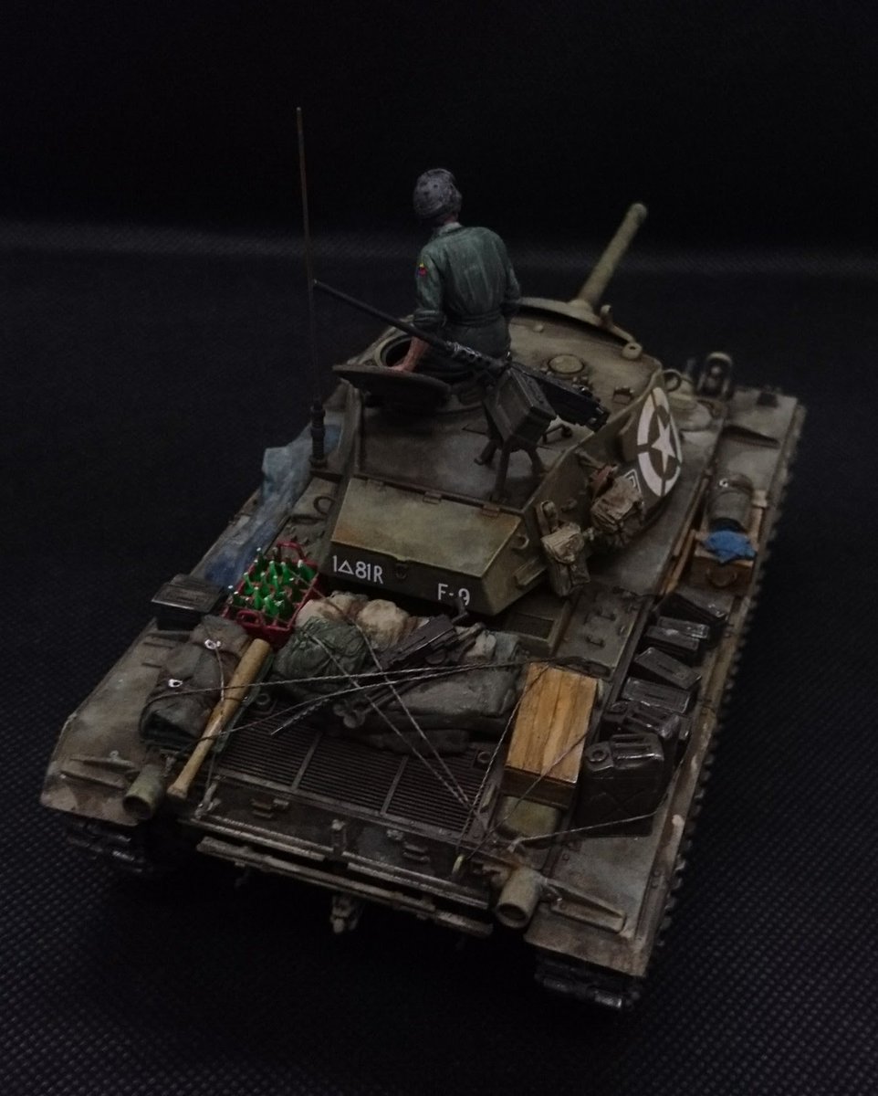 タミヤ 1/35 グレイハウンド完成!! 筆のタッチに赤と黄色を混ぜて塗ってみたけどなんかこう空気感がでてよい感じ!!新しいタミヤのフィギュアはやっぱり出来がうんとすごくておっかない。とかく形になってよかったのだ☺️