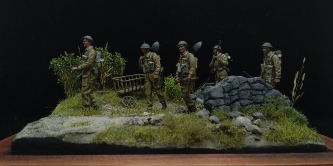 タミヤ1/35イギリス歩兵巡回セット完成!! 自分が思ってたより雰囲気ある感じに仕上がってよい感じ!!ベースもやれそうなことからコツコツ挑戦して作れたし何より完成できてよかったのだ😤