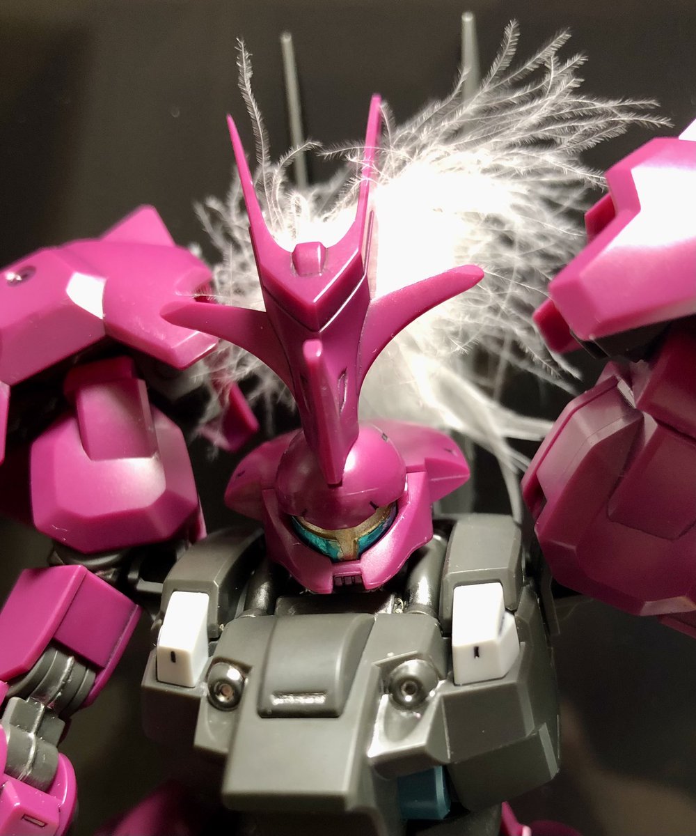 てことで? ディランザ完成〜♪ 2枚目以降、羽根飾りが丸まっちくてダサかったので、100均の羽根に変更。 しかし、4枚目、完全に戦国武将ですねw #ガンプラ好きな人たちと繋がりたい #ガンプラの画像を貼るとRTされると聞いて #水星の魔女 #柴田勝グエ