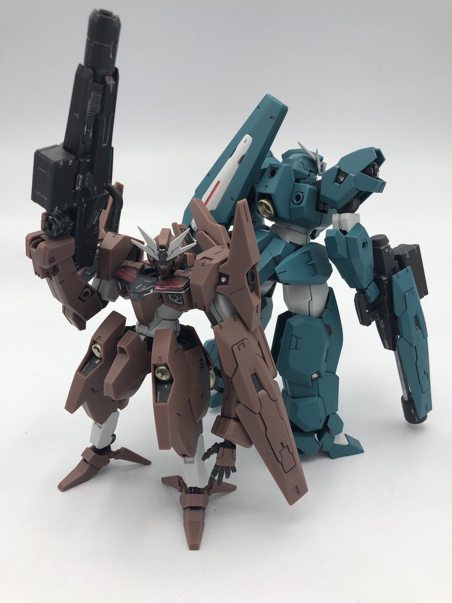 何とかもう一作。 グエル君主人公化を祝して、 「ジェターク・ヘビー・マシーナリー s」 部分塗装とウェザリングメインですが、グエル専用機だけは羽飾りを弄ってます。 #Re俺達のアナザー #ガンプラの画像を貼るとRTされると聞いて #水星の魔女 #G_Witch