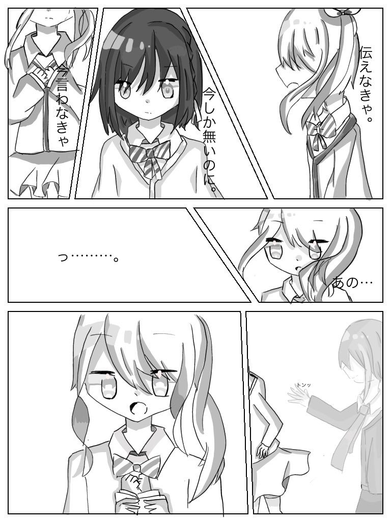 2 6 プロセカオリジナル漫画 絵名と瑞希と類 ストーリー 絵名に瑞希の自分の事を伝える時に、やっぱ苦しくて言えないってなろうとしてた時に、類に背中を押されて絵名に、伝える というストーリーです。 #prsk_FA 22/04/04 18:53