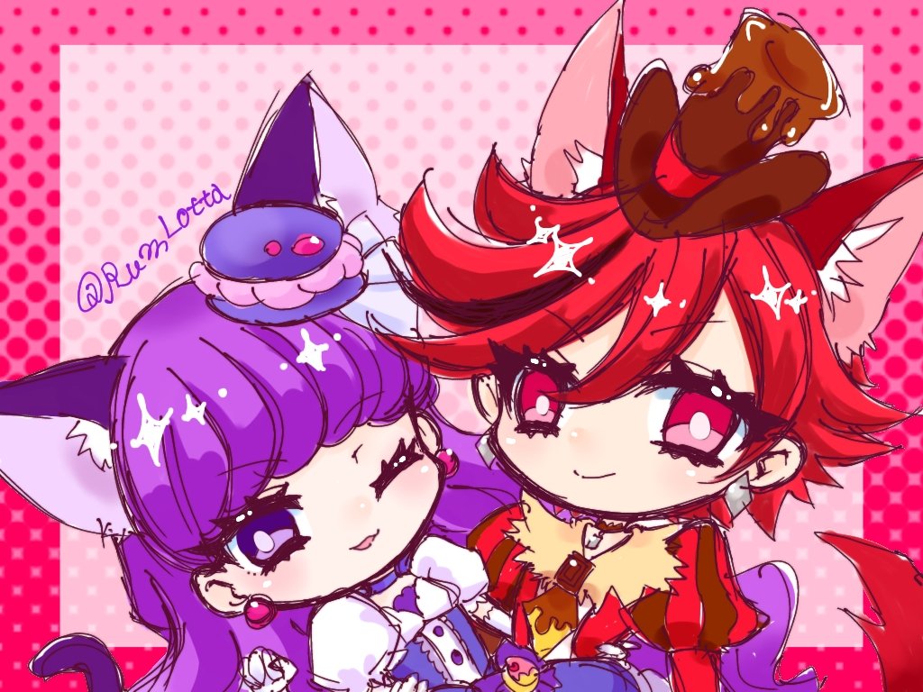6 11 #プリキュア版深夜の真剣お絵描き60分一本勝負 ペアお題/ショコマカ♥💜 (約2ドロになってしまいました💦) 23/06/02 10:41