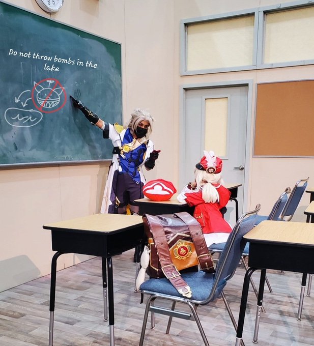 1 10 Sharing this new picture here cause basically no one follows me here and I finished editing it but won't be posting on IG until Saturday bc algorithm #GenshinImpact #albedo #klee #cosplay 22/07/14 05:57