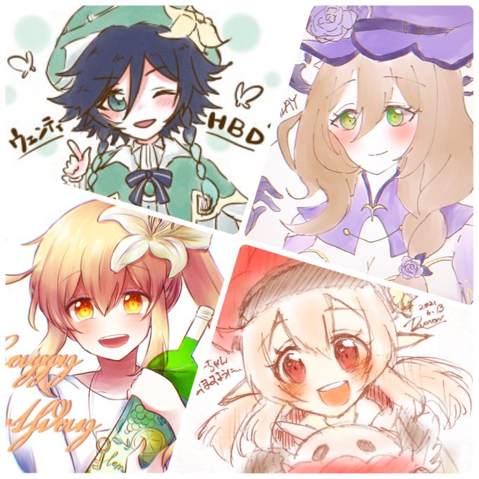 0 2 #今月描いた絵を晒そう 今月は原神キャラばっかり(*´ω`*)あとお誕生日も迎えました🎂来月はクレーちゃんの誕生日だから頑張って描くぞ〜!️💪✨ 21/06/29 21:27