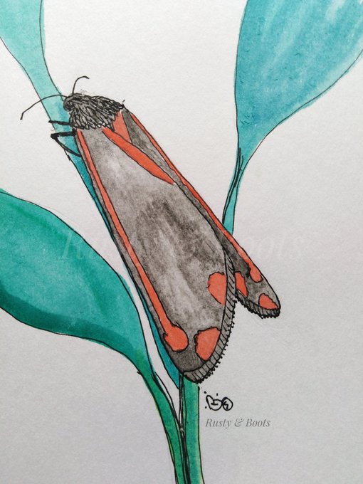 Day 3 of #summerbuggin #amazinginsects with @artyreg77 @lisap_illustrations @kirstensneathart Cinnabar Moth 🦋 I really like this one. #illustration #nature #insects