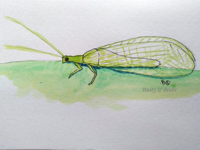 Day 7 of #summerbuggin #amazinginsects Green Lacewing 💚 This is quite cute! 😄 #illustration #watercolour #nature