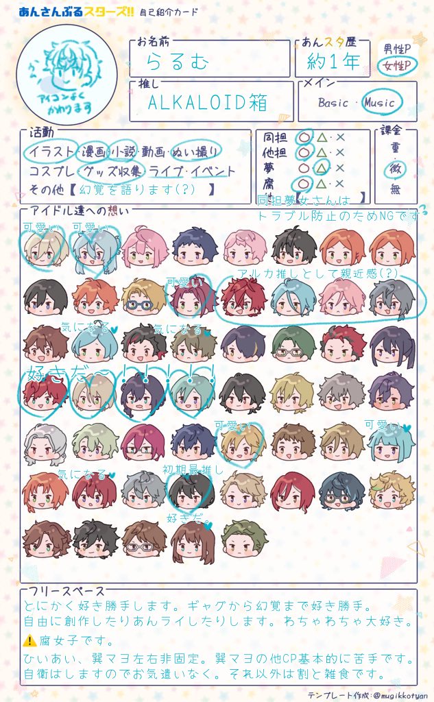 #あんスタ絵描きさんと繋がりたい #あんスタ好きさんと繋がりたい 追憶発表で気が狂ったのでタグを…… 新参アルカP ⚠️腐発言あり(♠️♥️/♦️♣️) ♦️♣️相手固定のため、少し慎重に確認しています 反応あった方で気になった方 無言でお迎えさせて頂きます! プロカ(確認推奨) → profcard.info/u/jwBhO2ljvMNI…