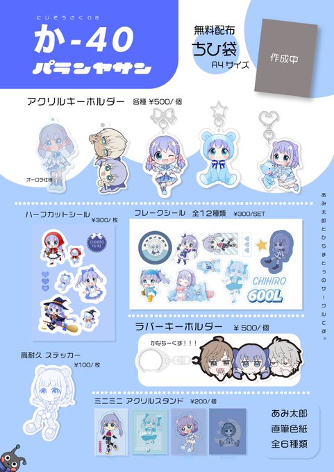 2023/10/9 #にじそうさく08 パランヤサンのお品書きです! あみ太郎と2人でお店出します! 勇気ちひろさん、イブちー、かなちーくず のグッズを作りました! 私が作ってるのは一部BOOTHでちょびっと先行で出品予定です(9月) paranyasan.booth.pm よろしくお願いします!!