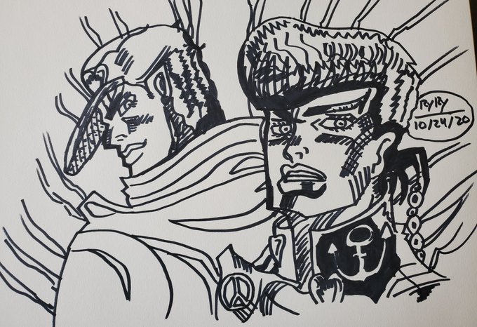 Jotaro & Josuke from JoJo's Bizarre Adventure sharpie drawing! #JoJosBizarreAdventure #sharpie #JoJo #manga #anime #art #fanart #drawing #artist #draw #sketch #sketchbook #sketching #sketches #traditonalart #inktober2020 #inktober #inktoberday24 #jotaro #josuke
