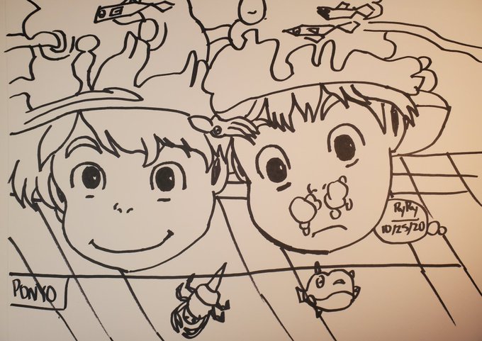 Ponyo & Sosuke sharpie drawing. #ponyo #sharpie #JoJo #manga #anime #art #fanart #drawing #artist #draw #sketch #sketchbook #sketching #sketches #traditonalart #inktober2020 #inktober #inktoberday25