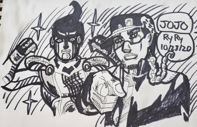 Jotaro Kujo & Star Platinum from JoJo's Bizarre Adventure! #JoJosBizarreAdventure #sharpie #JoJo #manga #anime #art #fanart #drawing #artist #draw #sketch #sketchbook #sketching #sketches #traditonalart #inktober2020 #inktober #inktoberday28 #jotaro #JotaroKujo #starplatinum