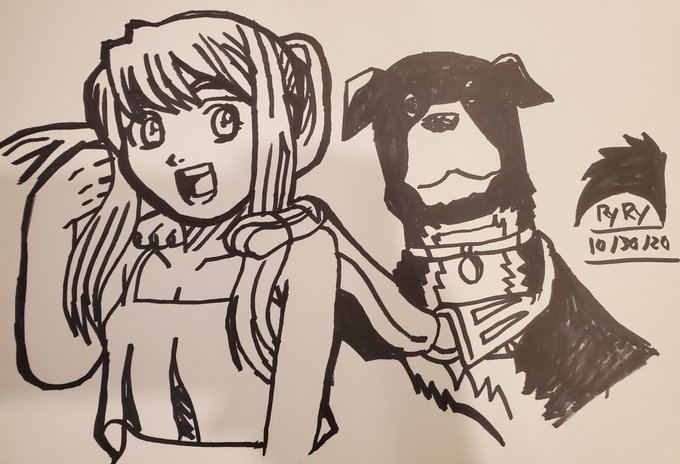 Winry and Den from Fullmetal Alchemist #FMA #FullMetalAlchemist #Winry #art #fanart #sketch #draw #drawing #manga #sharpie #inktober2020 #inktober #inktoberday30
