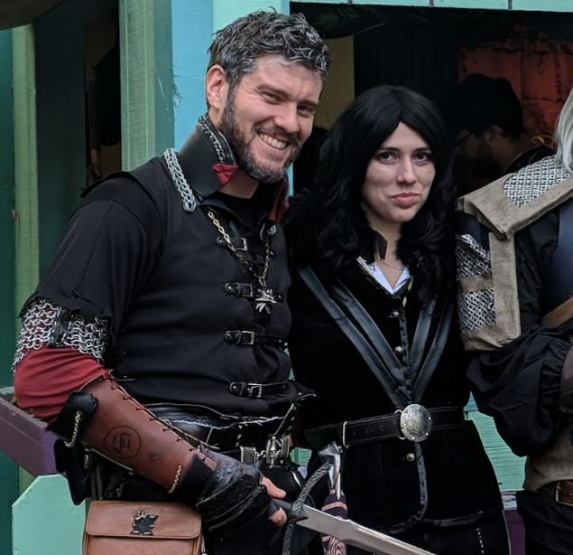 Throwback to my Renfest days when I sold absinth to Yennifer and flashed her my sword. Look at that cheek smile. #cosplay #witcher