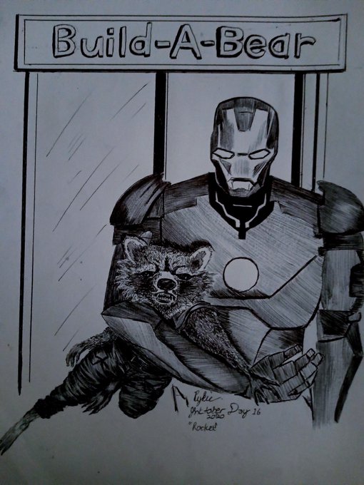 I hope somebody gets the joke.. #inktober2020 #inktoberday16 #day16 #rocket #rocketraccoon #ironman #marvel #marvelfanart #rocketfanart #ironmanfanart #fanart #inksketch #art #drawing #buildabear #artistofinstagram #ballpen