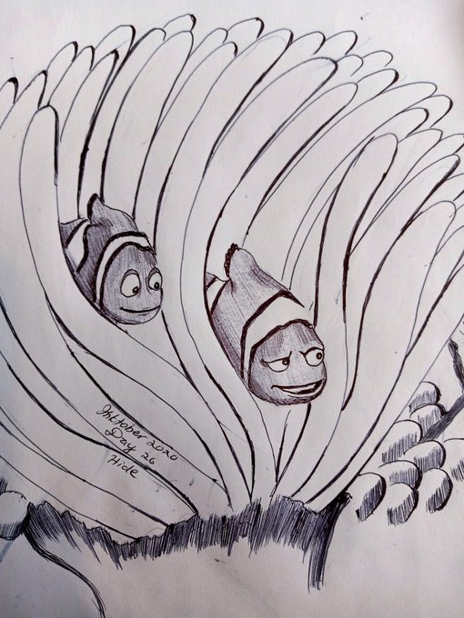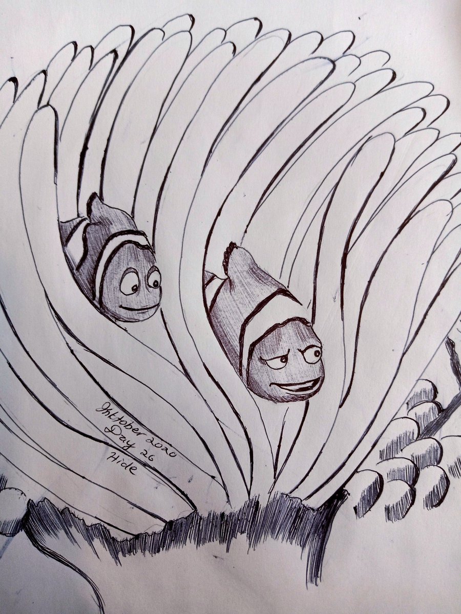 #inktober feels like exercise! #inktober2020 #inktoberday26 #day26 #hide #findingnemo #anemone #inkdrawing #art #artist