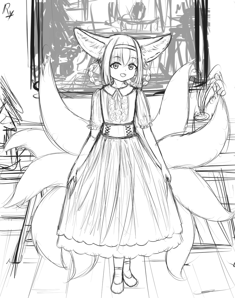 #inktober #inktober2021 #Arknights #アークナイツ #明日方舟 Day 22 - Suzu Nine (part 1) what if.... Suzuran's tails can split like tamamo no mae from Fate/typemoon only sketch but I will slowly work on design and coloring :3