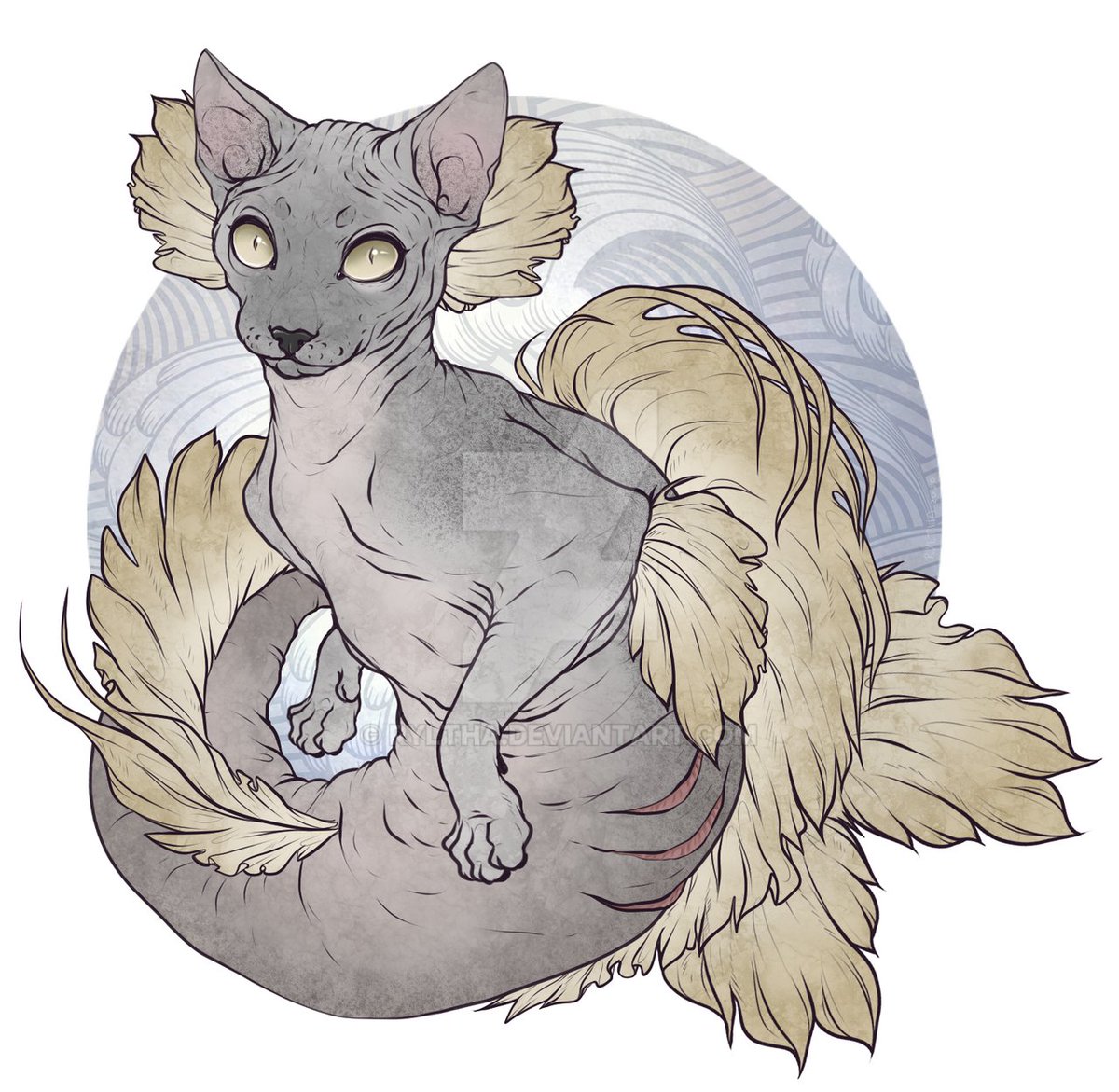 Mersphynx Nephthys Project. It's Mermay, but somehow I don't feel like drawing traditional mermaids, but luckily my little muse, Nephy, give me some ide! Check my Redbubble to original sphynx themed merchandise: redbubble.com/people/Ryltha/… #mermay #mermay2020 #sphynx #catart #cat