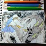 Scallop! double fanart with The little trashmaid and Out of the blue! two differently beautiful comics that I love very very much! I'm soo proud of this one - 0- #fanart #thelittletrashmaidfanart #thelittletrashmaid #outoftheblue #outofthebluefanart #inktoberday4 #scallop