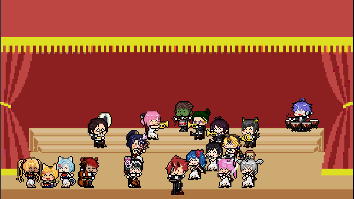 みんなおはよう! 今日も今日とてお仕事…!! ま、マジで身体おかしなるで…!! それはさておき 現在のみんなでオーケストラの 進行状況です!増えたね…!! まだ募集してるし興味あったら 固定ツイートを観てね! #おはようVtuber #ドット絵