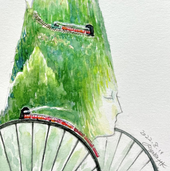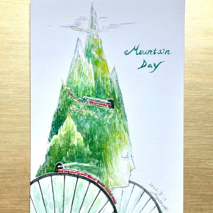 ✨⛰Enjoy your summer trip🌻✨ 私は頭と絵の中で旅行〜😌 #山の日 #MountainDay #nationalholiday🇯🇵 #watercolor #art #illustration #水彩 #アート #イラスト