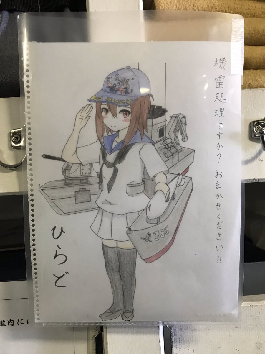 #フォロワーの9割以上が体験したことなさそうなこと 海上自衛隊の掃海艇ひらどに私の描いたひらどちゃんがあります。