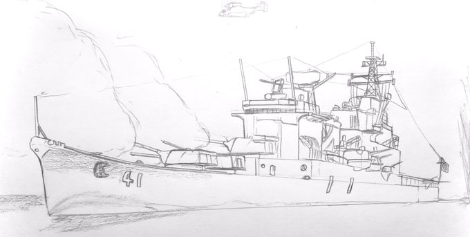 1 14 #皆さん線画と塗った後を見せてください 自分がプラモで作った架空艦ですがね(^^; イラストはまだまだ勉強中です。 20/11/17 17:31