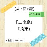 こんばんは。 ワンドロライ開催週間となりました! 9/12~9/18のお題を発表致します。 お題は『二度寝』『拘束』です。 作品には【#龍握ワンドロワンライ】のタグ付けをお願い致します。 ご参加お待ちしております🚒🚓🍀