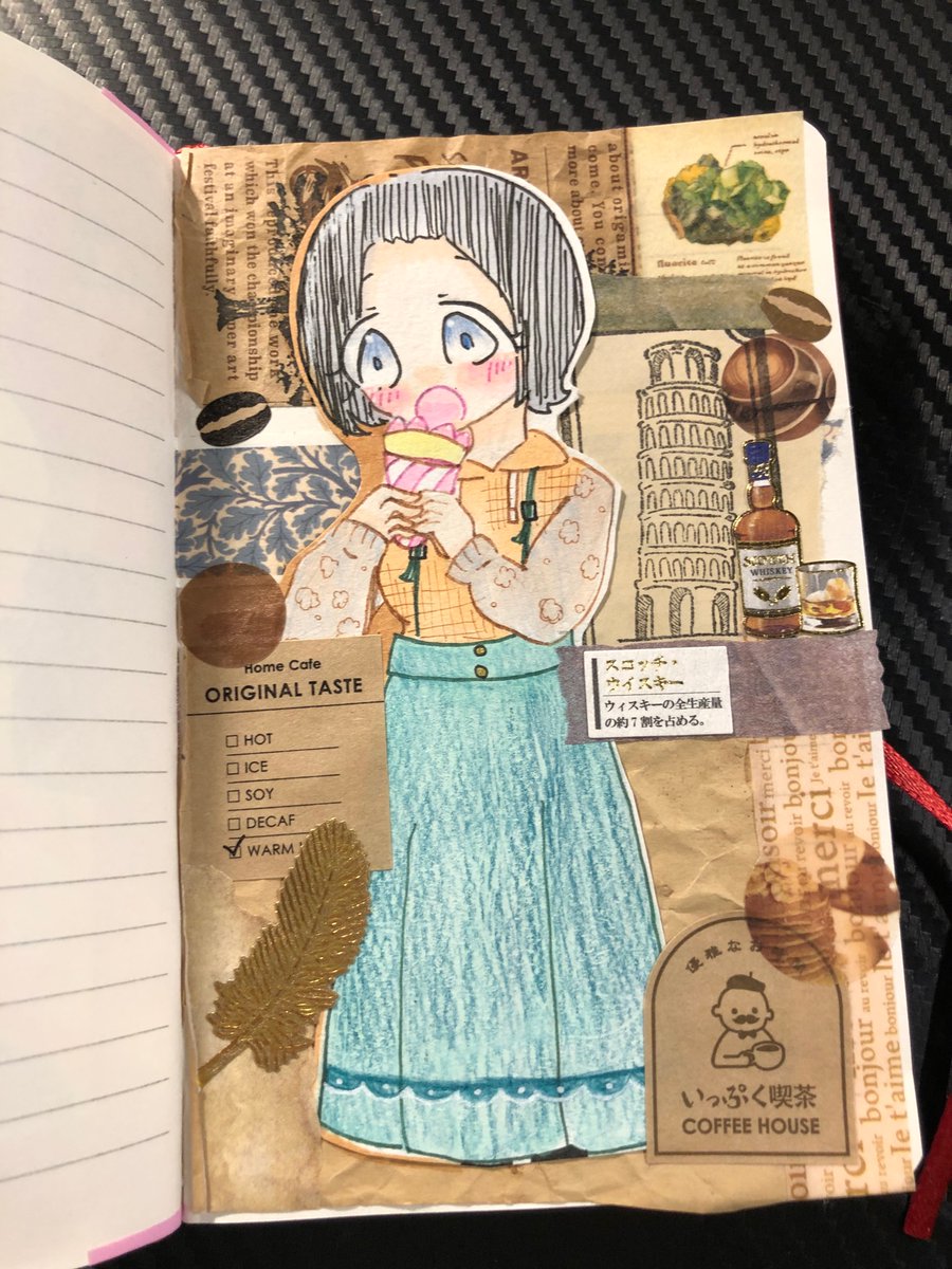 久しぶりのおしゃんな感じのコラージュ(*´-`) 因みにお洋服はリアルで買ったやつモデル コーヒー染めした紙ってやっぱ最強に可愛い☕️ #イラスト #イラスト好きな人と繋がりたい #絵描きさんと繋がりたい #コラージュ