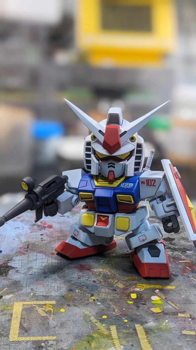 BB戦士 RX-78-2 ガンダム 完成 この頭身は小さくてカワイイですね🥰 各所細かいところは、エナメルをエアブラシ塗装して塗り分けました! マーキングシールは艶有り吹いて、中研ぎしたけど流石に段差消せなかった😅 #ガンプラの画像貼るとRTされると聞いて #ガンプラ #ククルス・ドアンの島