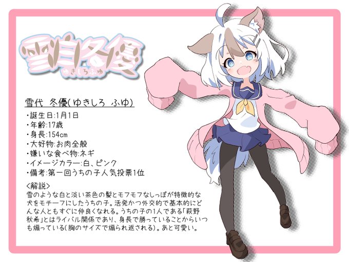 うちの子プロフィール➀ 【雪代 冬優】 要望があったのでうちの子のプロフィールをそれぞれ作ります! トップバッターは冬優ちゃん!可愛い!!💕💕 #うちの子 #一次創作 #絵描きさんと繋がりたい twitter.com/Ryu_illust_586…