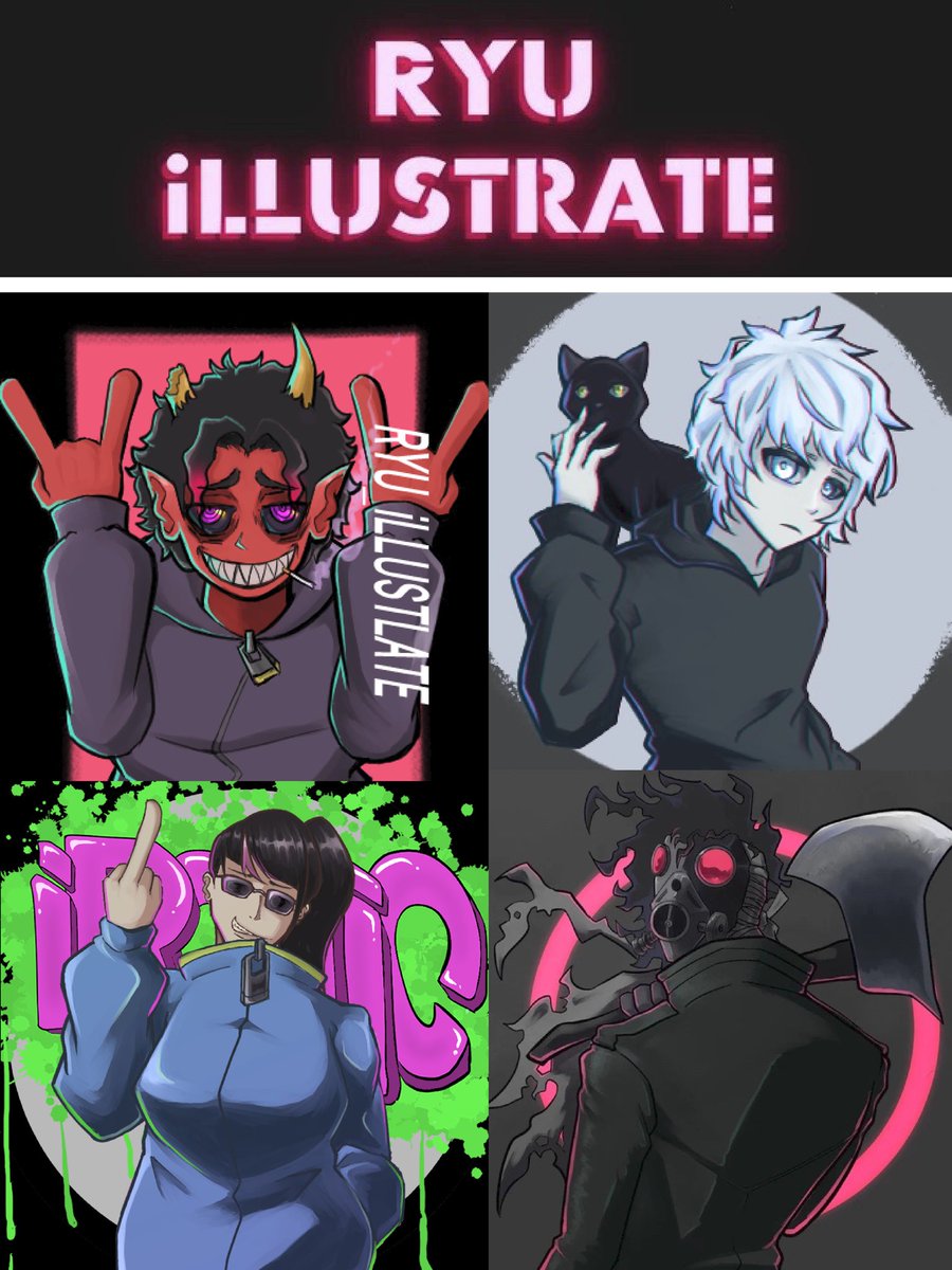 @Lopi_illust @3kak1_Flag ろぴさんいつもご企画ありがとうございます!! イラストレーターのリュウと申します! ダークでかっこいいを目標に色々描いてます!! よろしくお願いします!! #絵描きさん交流会 #イラスト好きさんと繋がりたい #イラスト依頼