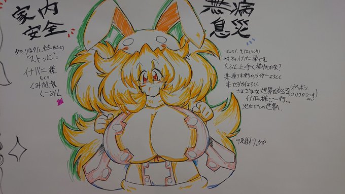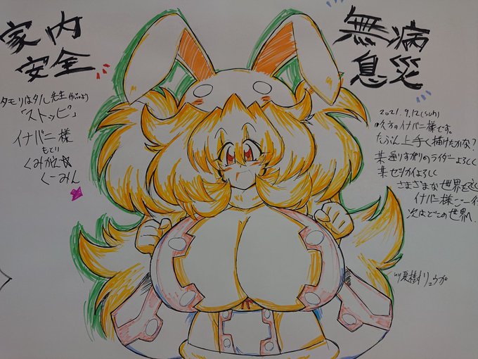 #今月描いた絵を晒そう 今月描いた絵は絵ですが…… 9月12日の「こみっくトレジャー38」そこの落書きスペースに ケロケロエースに連載されてたタモリはタル先生の「ストッピ!」のイナバニ様 あれこれやって2時間半はかかったー
