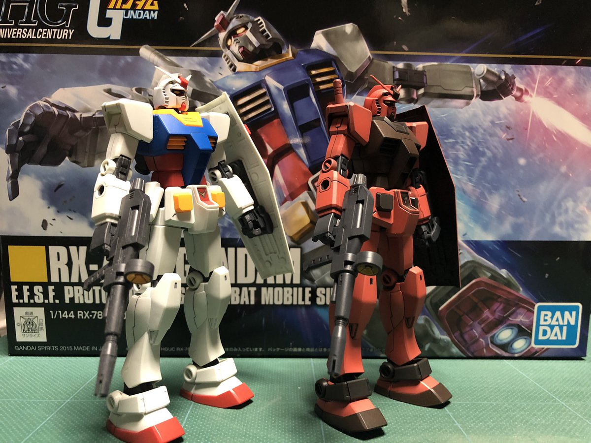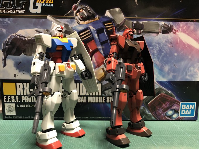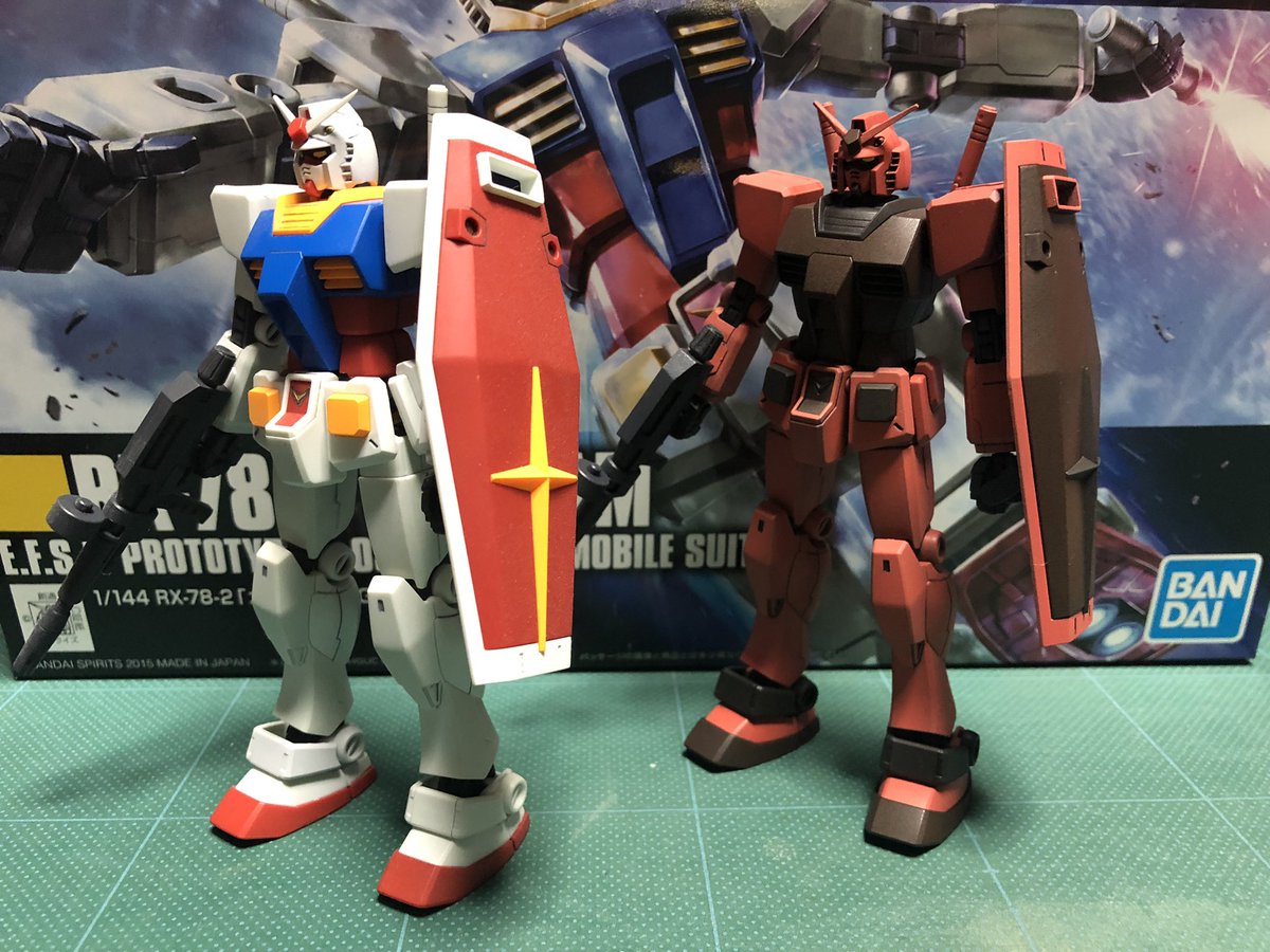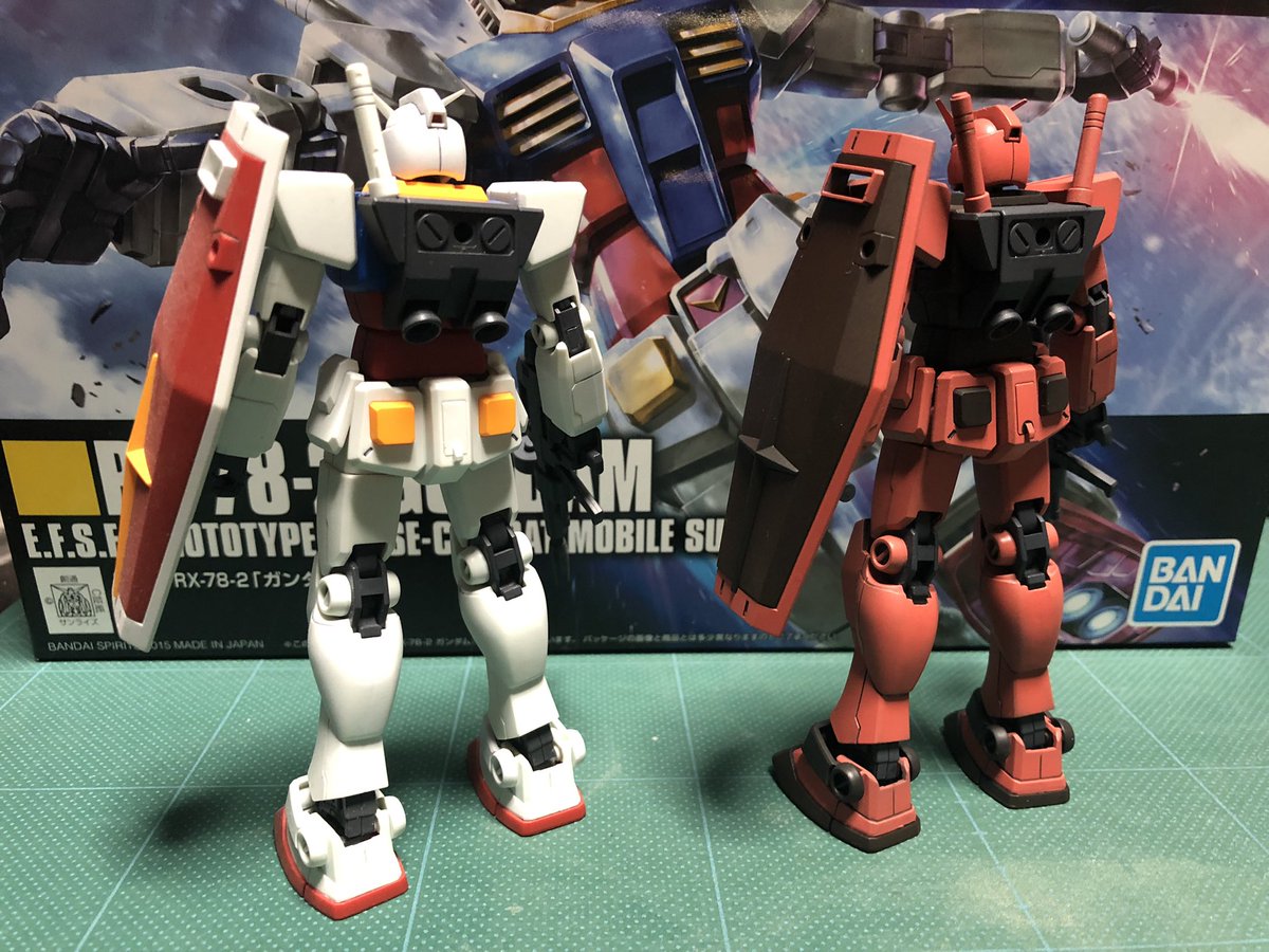 たくさんのイイネ。 ありがとうございます。 以前に作ったノーマルカラーと比較。 見比べて思うのは シールドの裏は黒がいい! ですかね。完全好みの問題なんですがね。夜は補修します。頭部の隙間埋めどうするかなぁ #ガンプラ好きと繋がりたい #ガンプラの画像を貼るとRTされると聞いて