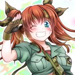 エクソダスギルティー・真道カスミ、完成。 ただただスタッフへの敬意を込めて描きました。 背景のマップはこちら(pixiv.net/artworks/26392…)を加工して使わせて頂きました。 #エクソダスギルティー #真道カスミ