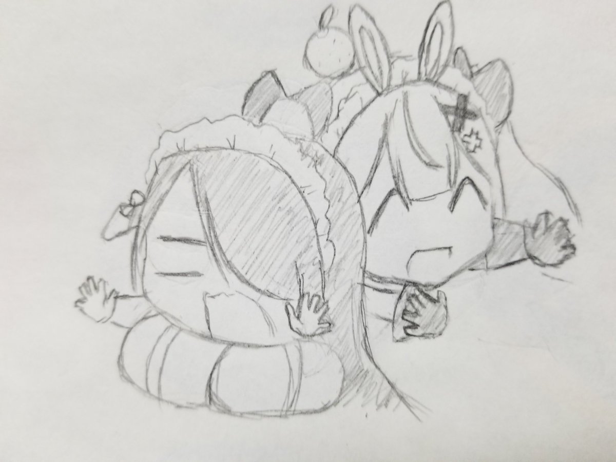 #絵東ライフ #まりあーと 下手ですが ライフ先生が遊戯王配信で餅カエルのパロ絵を描いておられたのを見て、この光景が浮かんできたので