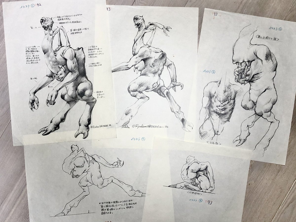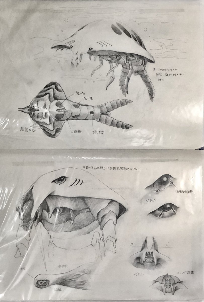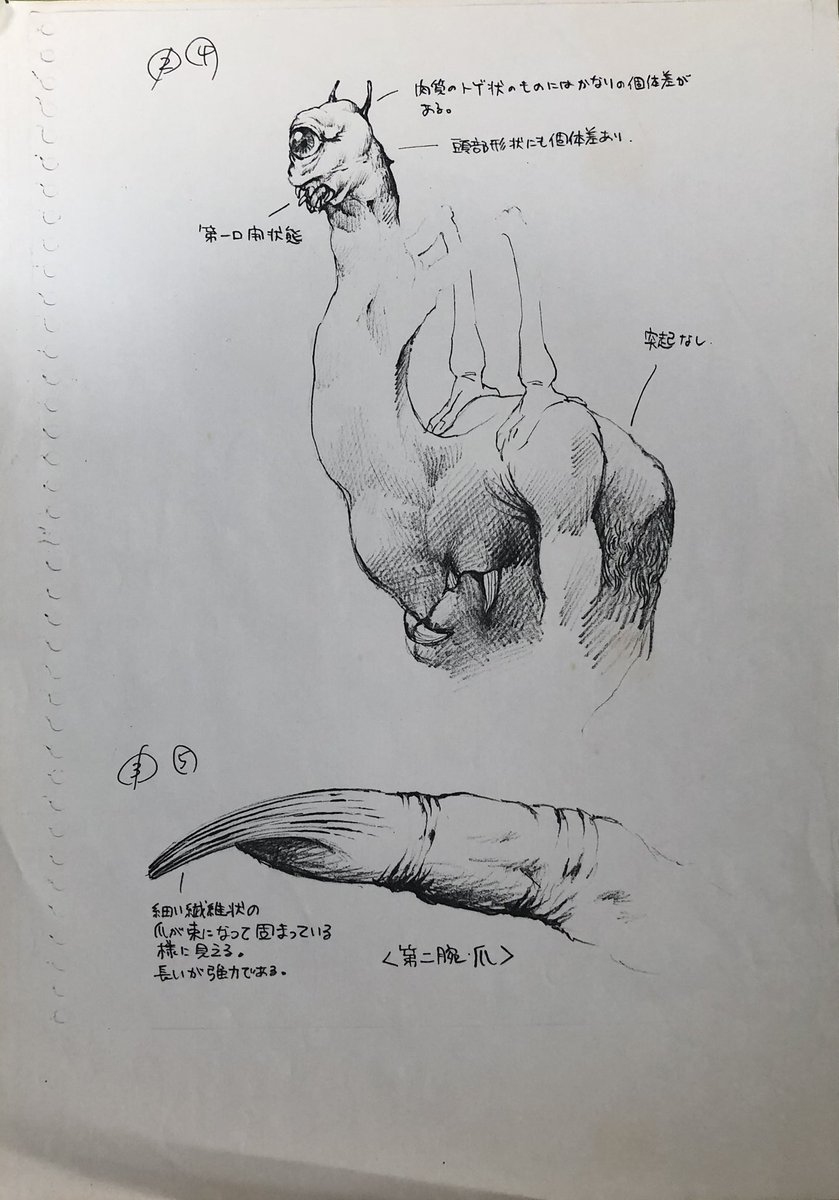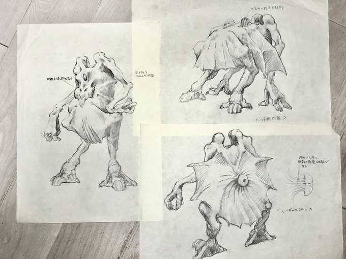 122 408 これは数年後に宇宙船の連載用に描いたものですが普通の着ぐるみでは表現できないモンスターを作ろうと一生懸命でした。ギャバンは1982年、ダーククリスタルは1983年だったのでとんがっていたと思うんですが"大人の事情"で形にしてもらえませんでした。 22/03/05 22:07
