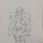 下書きシリーズも再掲。 パロチェンマン大魔神は右腕と右脚を同時に出した方が阿呆っぽくて面白かろうと下絵から変えました。